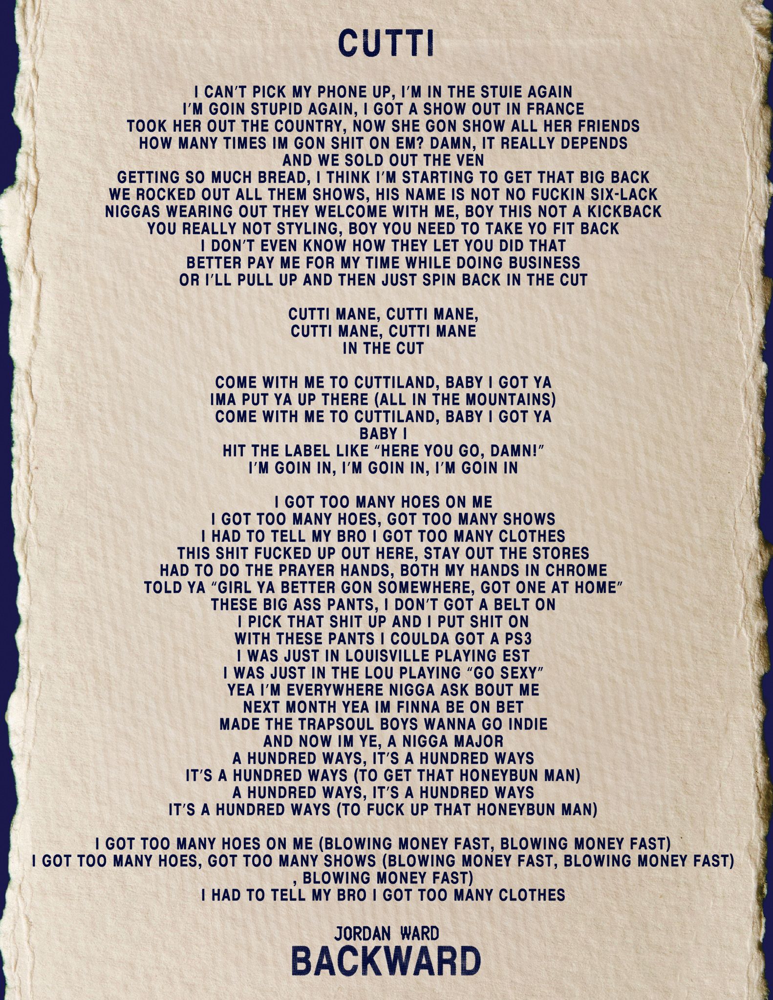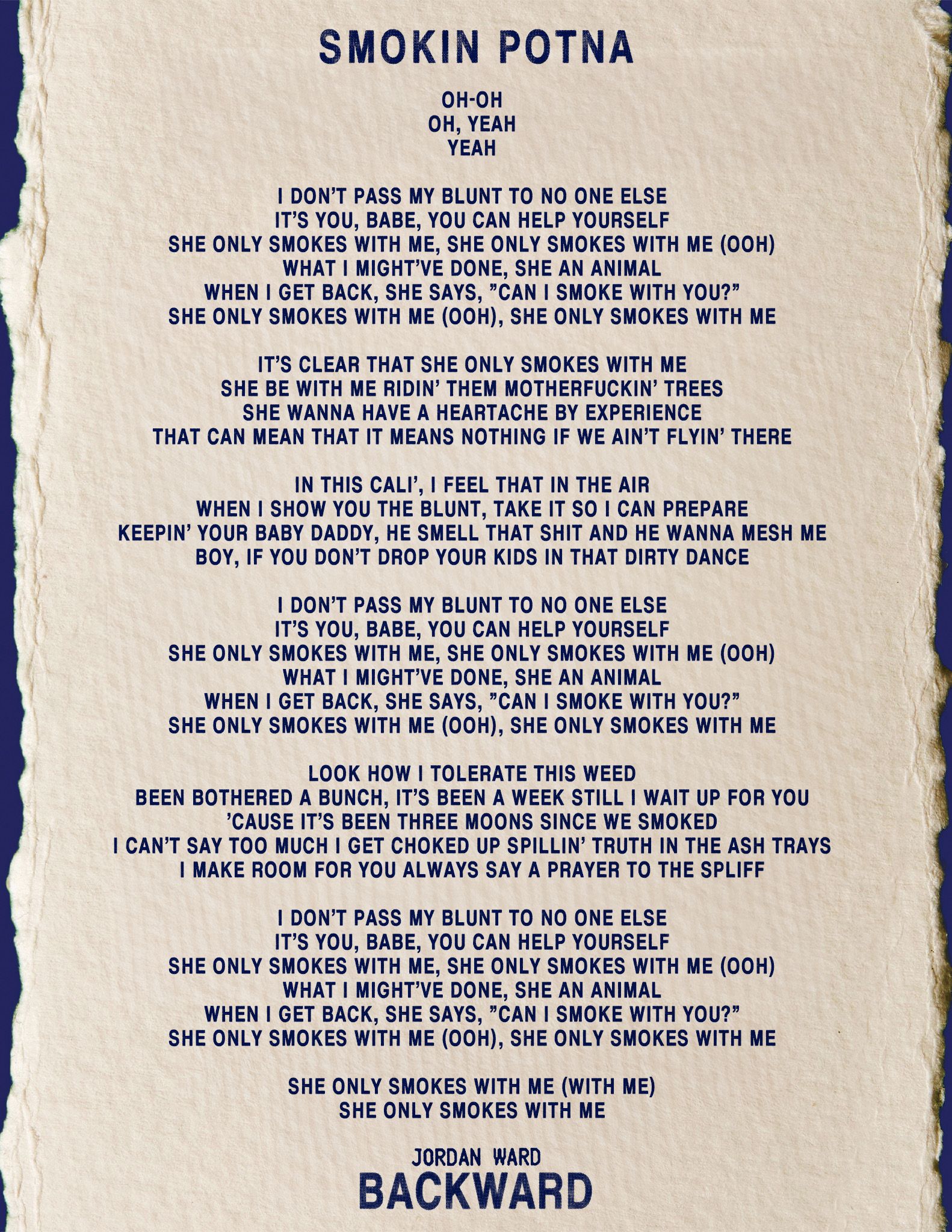 Lyrics STRANGERSMOKIN POTNAHIGHRoss Fit (1)NOISY NEIGHBORSCHANGE OF SCENERYJUICYTHEMSELVESTAKE-OUTTIL THENCHAMPION SOUND (1)CHAMPION SOUND (2)YCUTTI (1)CUTTI (2)CARSEX